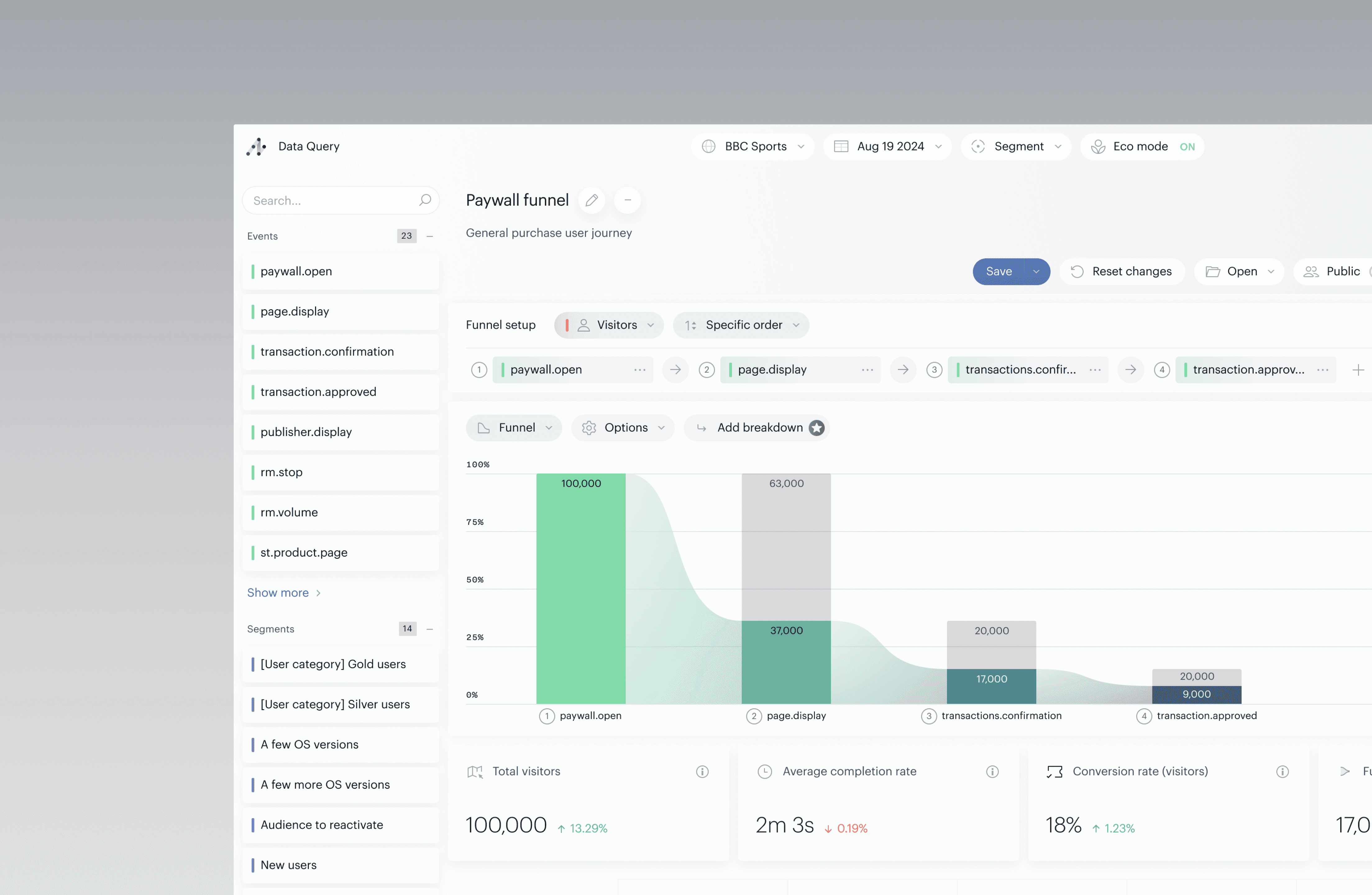 最先端の多機能クエリビルダーとして定評のあるPianoのデータクエリツールは、直感的なグラフィカルユーザーインターフェースを備えており、SQLや他のコーディング言語を使わずに、カスタムデータセットや指標、セグメント、グラフを簡単に作成することができます。